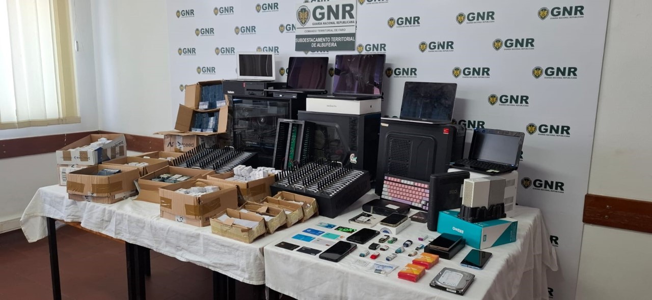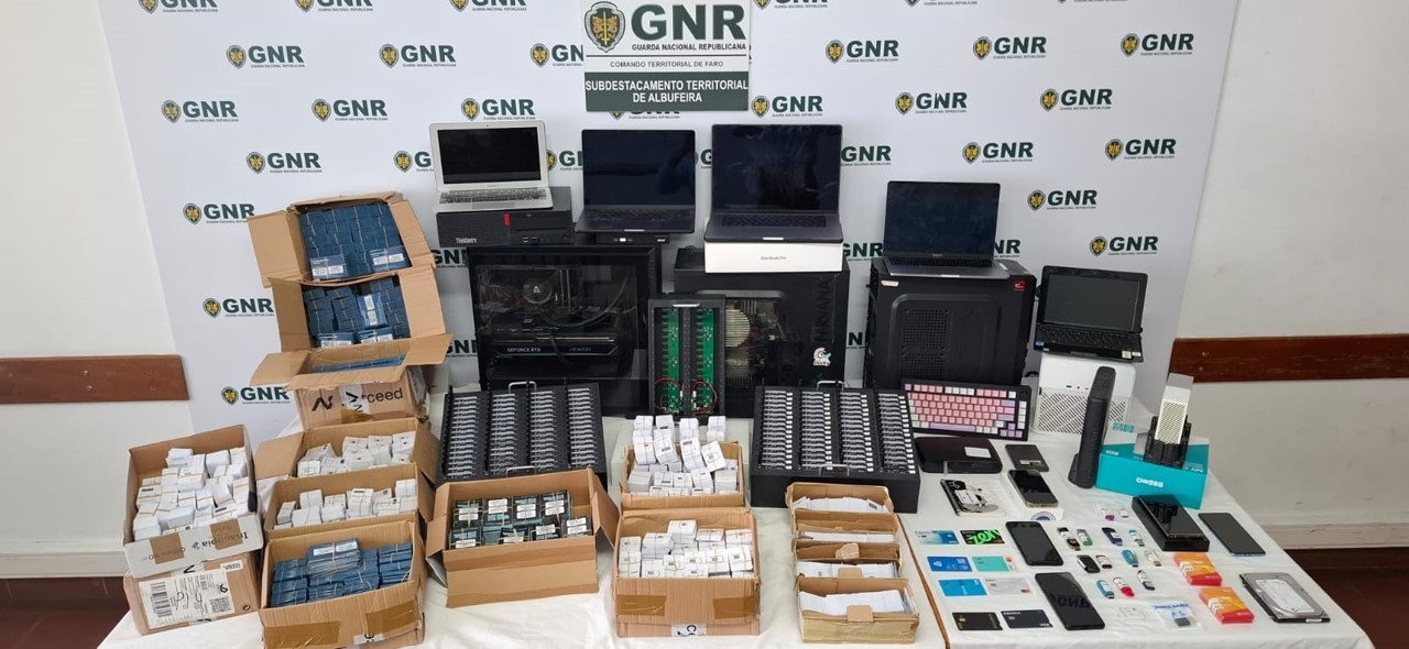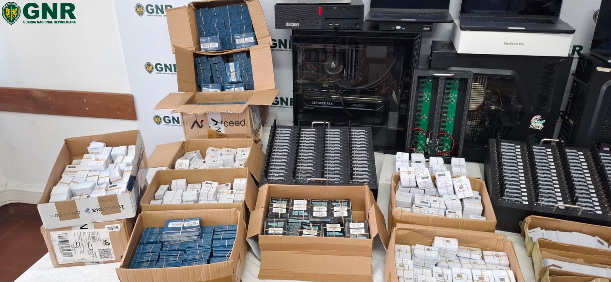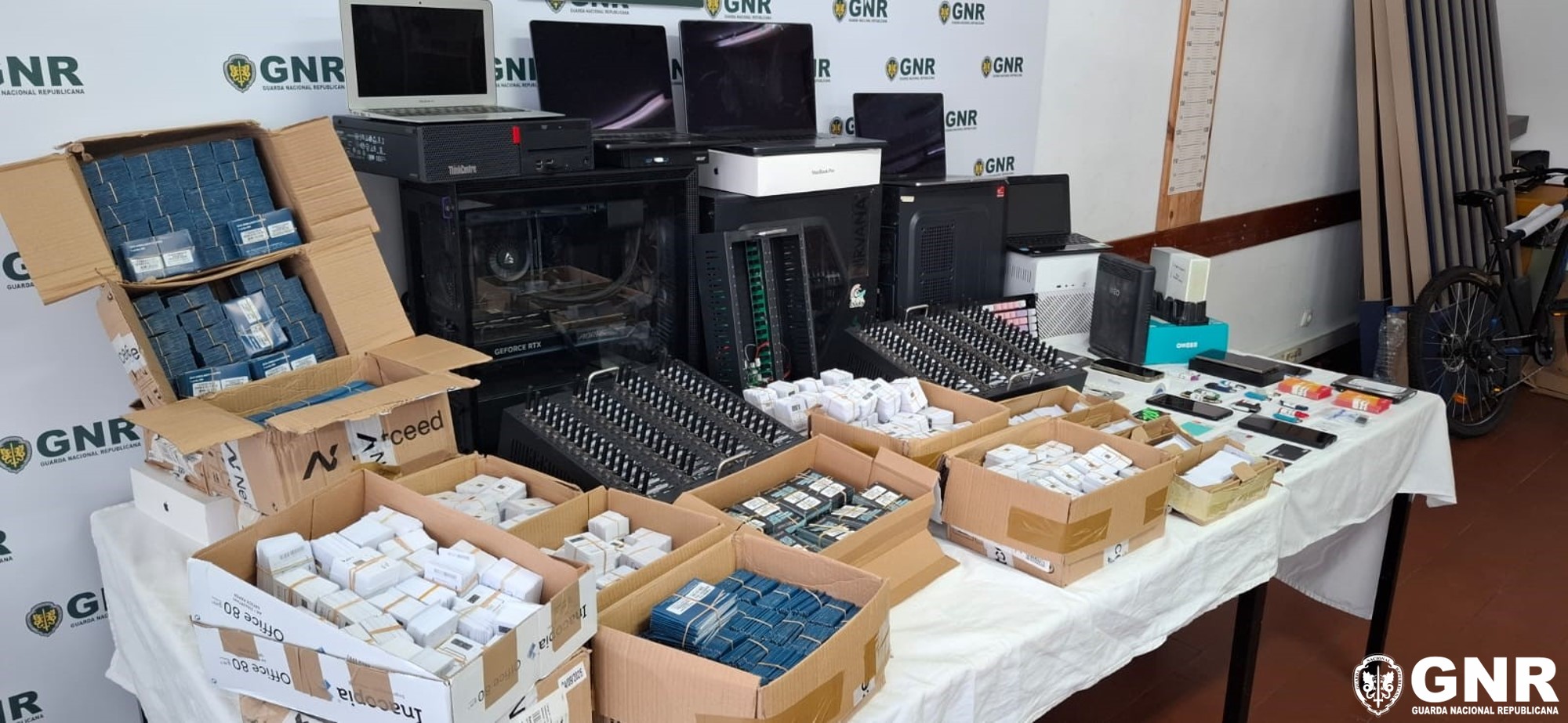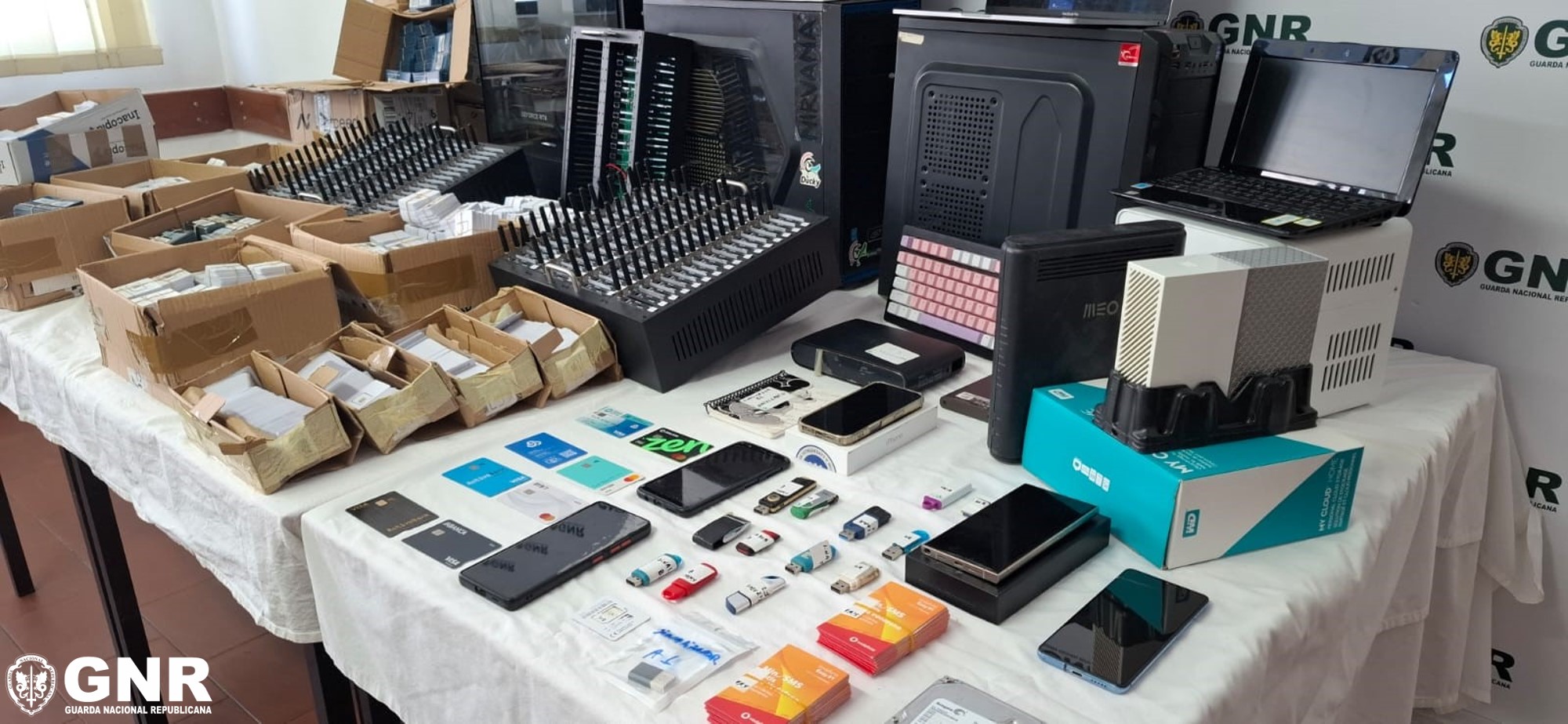 Segundo a GNR, foram ainda apreendidos 15.111 cartões SIM de uma operadora nacional, 20 cartões bancários, 19 ‘pen drives’, 10 computadores, cinco telemóveis e cinco discos rígidos.