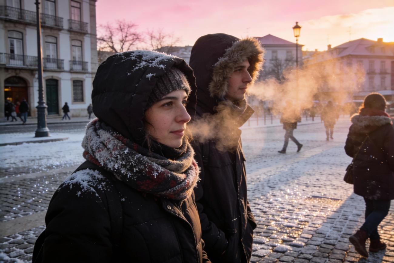 O frio previsto confirmou-se durante a madrugada deste sábado, com uma descida acentuada das temperaturas mínimas em várias regiões do continente, em particular no interior norte e centro e em alguns pontos do Alentejo. Em várias cidades, os termómetros desceram para valores próximos dos 0 graus nas primeiras horas do dia, num episódio que marcou um dos amanheceres mais frios deste inverno até agora e que deverá continuar a fazer-se sentir nos próximos dias, sobretudo durante a noite e ao início da manhã, nas mesmas regiões do interior.