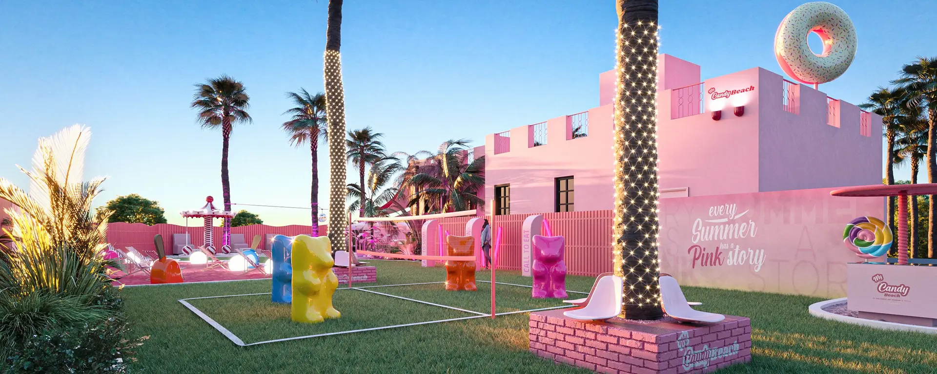 Neste contexto, tudo neste novo espaço está feito para que se sinta numa gigante e gulosa loja de doces. O rosa é a cor predominante incluindo a areia. Da decoração fazem também parte gelados, lollipops e ursinhos de gomas gigantes. Inspirado nos famosos bares de praia de Miami e nos Cafés mais trendy e pink de Londres, o My Candy Beach está decorado com elementos de Art Déco reinventada. Com um lounge de areia rosa, único no país, e algumas das peças mais emblemáticas do famoso The Sweet Art Museum, este novo bar “será, sem dúvida, a opção mais diferenciadora para quem está no Algarve”, garantem os promotores.