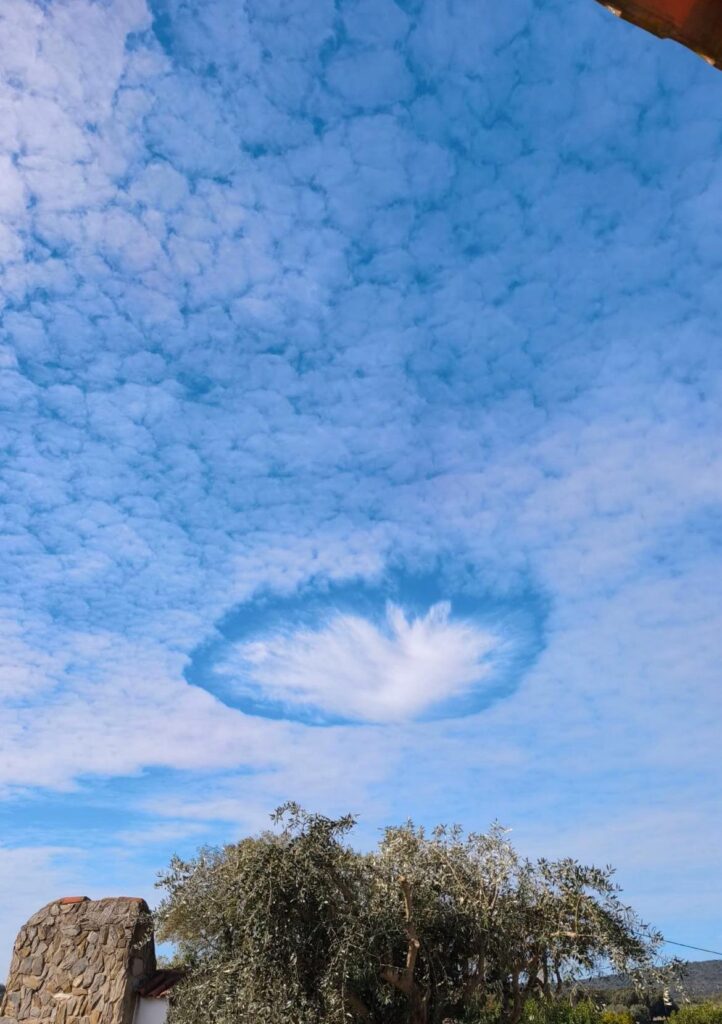 A formação destas estruturas provoca a sensação visual de que se abriu um “rasgo” nas nuvens, deixando zonas circulares totalmente limpas. A ocorrência não é comum e costuma captar o interesse de quem acompanha fenómenos atmosféricos.