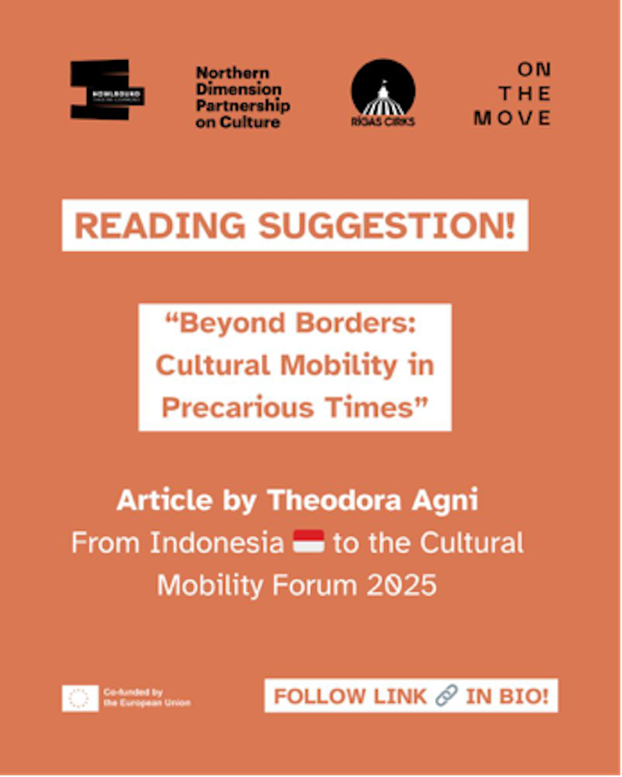 O artigo apela a uma abordagem mais inclusiva da mobilidade cultural, que aborde as desigualdades estruturais enfrentadas por todos os intervenientes no ecossistema das artes. Como gestora de artes em Yogyakarta, na Indonésia, Theodora refletiu sobre os principais dados levantados durante o Fórum de Mobilidade Cultural 2025, especialmente o fato de as residências culturais serem a forma preferida de mobilidade (49,8%) de todas as ofertas abertas, anunciadas pelo On the Move.