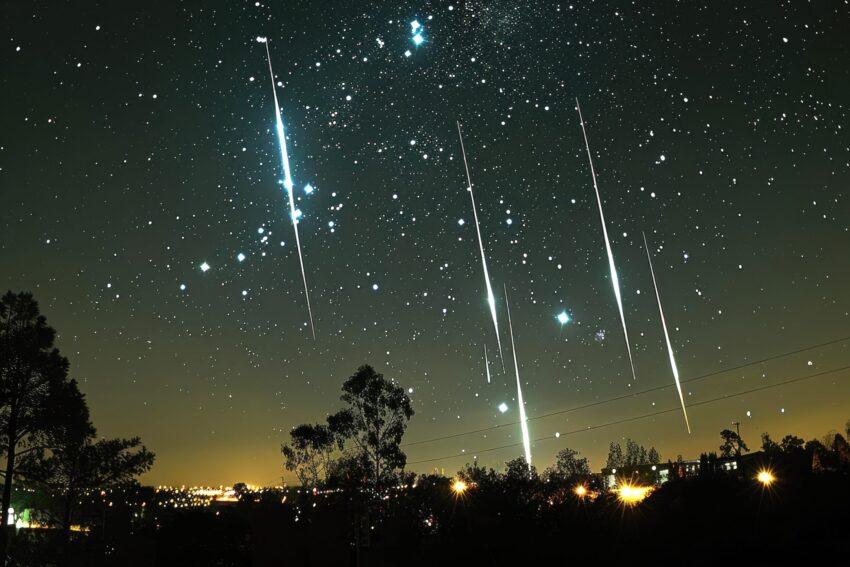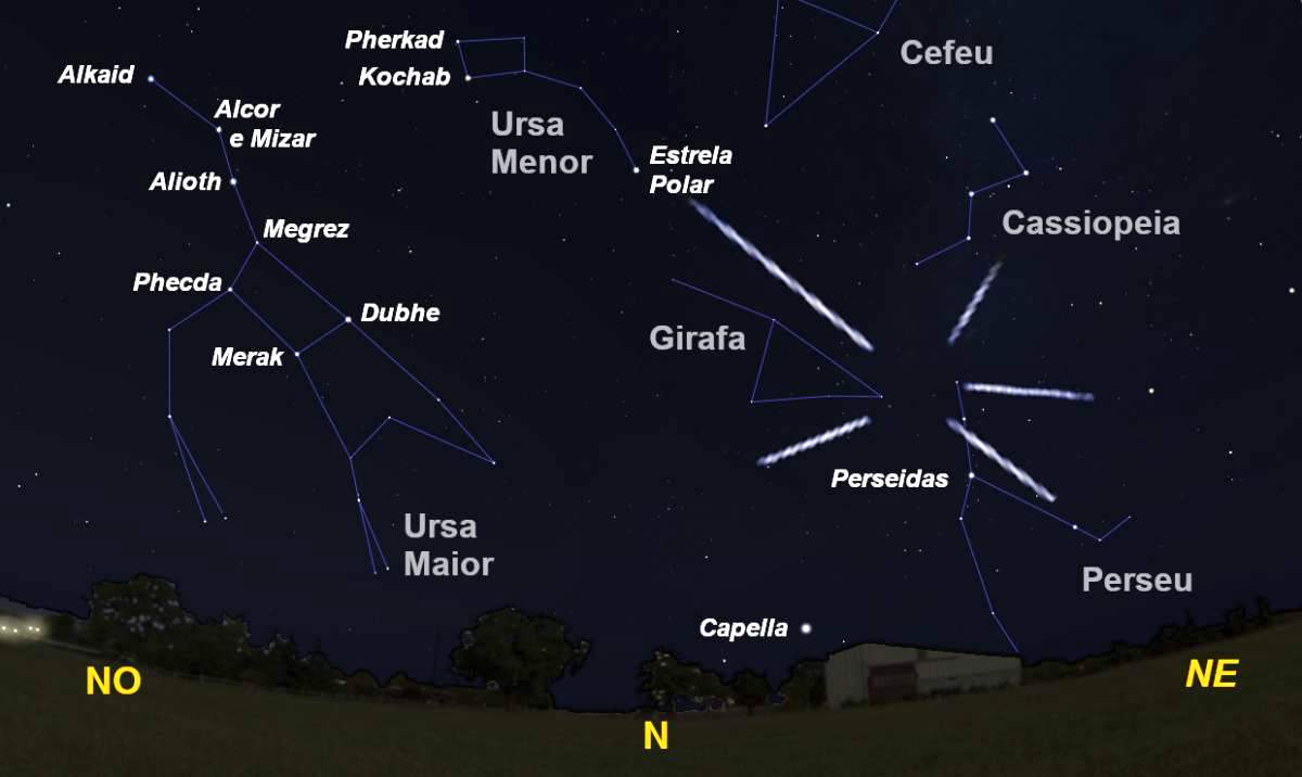 Entre os dias dezassete de julho e vinte e quatro de agosto, poderemos ver cruzar o céu pequenos meteoros provenientes do cometa 109P/Swift-Tuttle. Se percorrermos os seus rastos em sentido contrário repararemos que todos eles parecerão surgir de uma parte do céu (o radiante) próximo à constelação de Perseu. Esta e a famosa chuva de estrelas Perseidas. Este ano, o pico de atividade das Perseidas tem lugar no dia doze. Os cálculos costumam apontar a que, durante o pico de atividade desta chuva de meteoros, se observe uma centena de meteoros por hora. No entanto estas contas assumem um céu completamente livre de poluição luminosa, e que o radiante da chuva de estrelas se encontre no ponto imediatamente acima das nossas cabeças (o zénite), algo que não chegará a ser o caso.