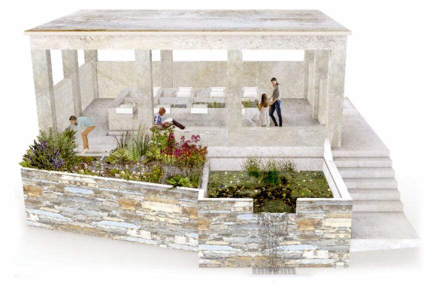Além das funções ecológicas, a intervenção resgata o papel social e estético do local. O espaço é redesenhado para funcionar como uma Ágora contemporânea – uma zona cívica acessível a todos, que proporciona um microclima de arrefecimento durante os meses quentes e um ambiente sereno para a observação da natureza. A beleza é intrínseca, reforçada pela utilização de materiais locais, como a pedra de xisto, que revitalizam o artesanato e o legado cultural da região.