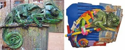 Aliás, curiosamente Bordalo II já criou imagens de camaleão, nomeadamente em 2016, encontrando-se no Museu de Street Art de Murcia. Mas estas poderiam ser também implementadas em locais que permitam criar ligações simbólicas entre espaços e cidades da Ria Formosa, contribuindo para a coesão territorial e para uma perspetiva do Algarve como um todo, em defesa do ambiente e da biodiversidade.