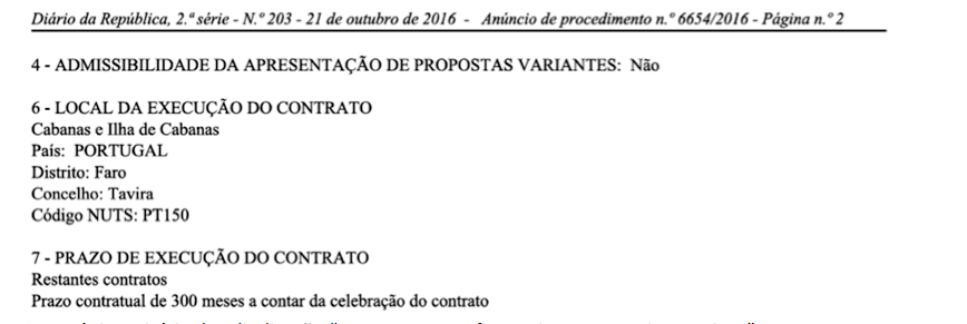 Em 2016 foi lançado pela Docapesca o concurso para a exploração da travessia marítima para a Ilha de Cabanas, em regime de exclusividade por uma período obsceno de 25 anos.