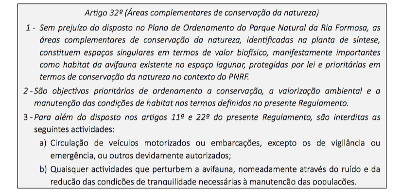Nesse sentido, expomos aqui o disposto no artigo 26º do Plano de Ordenamento da Orla Costeira entre Vilamoura e Vila Real de Santo António (POOC), o qual classifica as diferentes zonas do espaço lagunar: