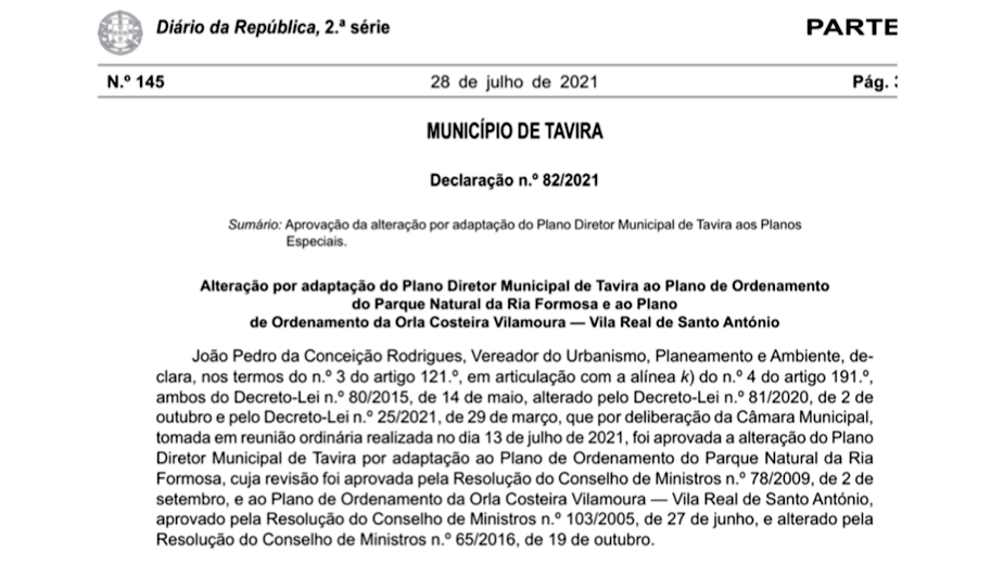 Assim, verifica-se que no actual Plano Director Municipal de Tavira consta o seguinte artigo:
