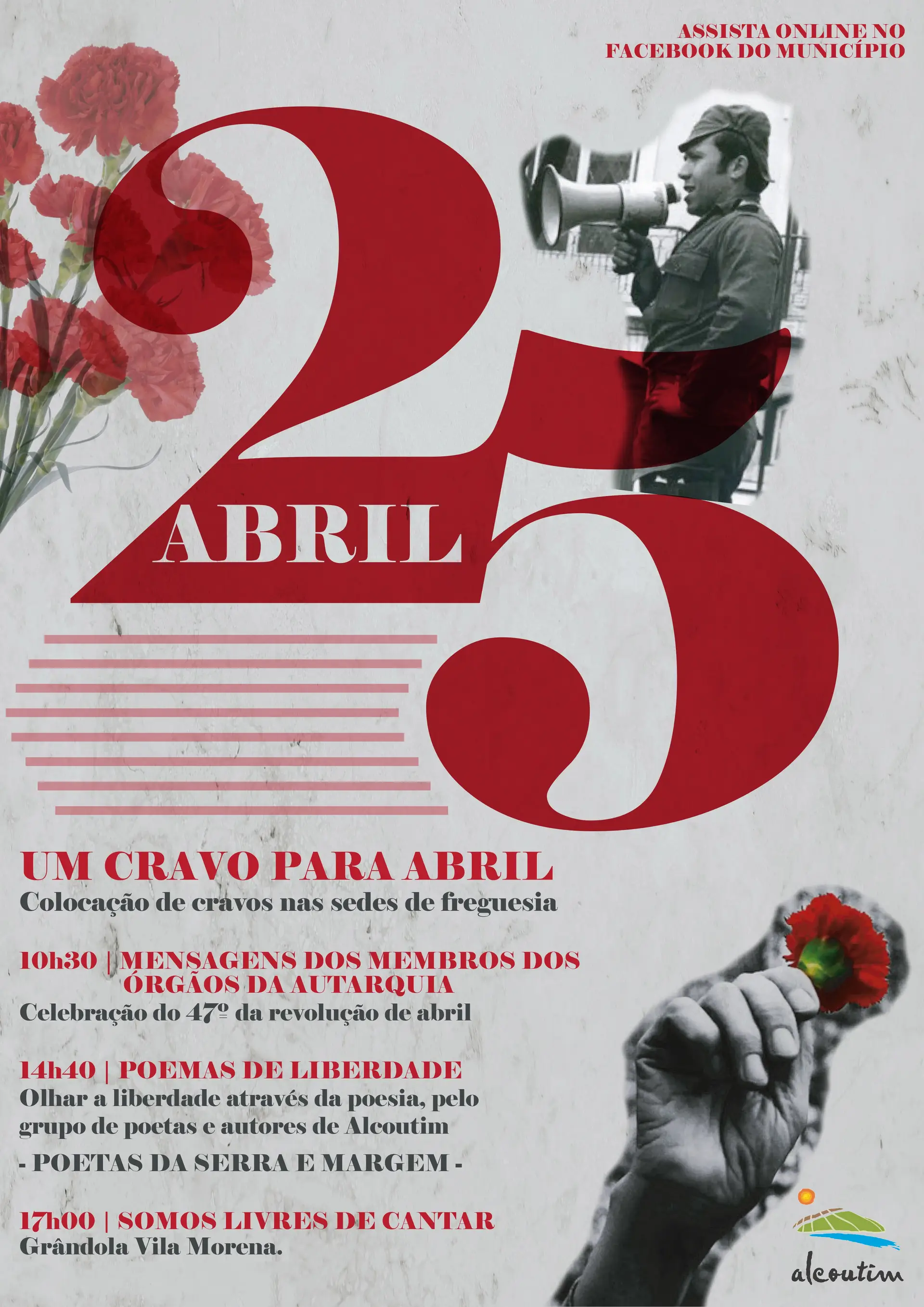 A programação dedicada à “Revolução dos Cravos” tem como objetivo celebrar a data e o que esta representa. Neste contexto, o programa comemorativo terá início na manhã do dia 25 de Abril, com a colocação de cravos nas diferentes sedes de freguesia, disponibilizando a recolha por parte dos munícipes.