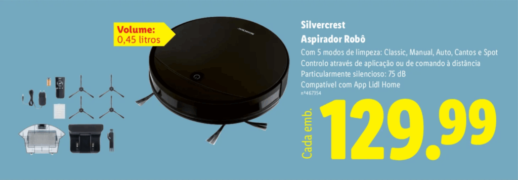 Para consumidores que procuram uma solução autónoma sem custos elevados, esta proposta posiciona-se como entrada acessível no segmento. O Lidl reforça assim a oferta de aspirador robô com um conjunto de funcionalidades orientadas para uso diário.