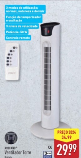 O Ventilador em Torre do Aldi é disponibilizado com uma garantia de três anos. Está atualmente a ser vendido pelo preço de 29,99 euros, um valor promocional em relação ao preço anterior anunciado de 34,99 euros.