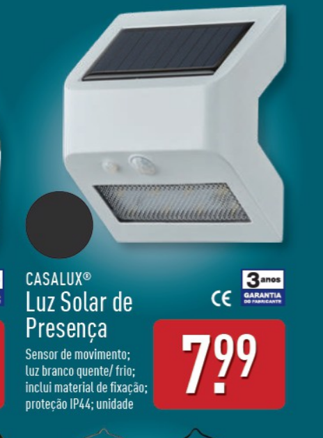 Com um preço de apenas 7,99 euros por unidade, esta Luz Solar de Presença da Casalux representa uma oportunidade acessível para reforçar a iluminação exterior com eficiência e autonomia energética. Está disponível nas lojas, por tempo limitado e sujeito ao stock existente.