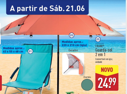 Com os dias de calor a apertar, os portugueses voltam a procurar sombra e conforto nas idas à praia. Para quem quer proteger-se do sol com praticidade e sem gastar demasiado, há uma novidade nas prateleiras: um Guarda-sol 2 em 1 do Aldi que promete tornar-se presença habitual nos areais. A chegada está marcada para sábado, 21 de junho.