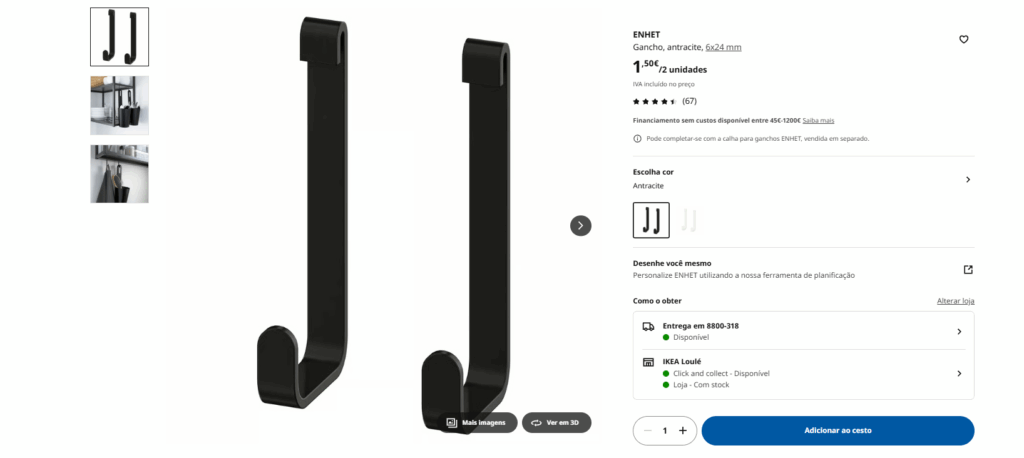 Com um preço abaixo dos dois euros, os ganchos Enhet representam uma opção simples e eficaz para tornar os espaços mais organizados, sem investimento significativo nem grandes alterações. Prova disso é a popularidade crescente destes pequenos acessórios nas lojas físicas e online da IKEA em Portugal.