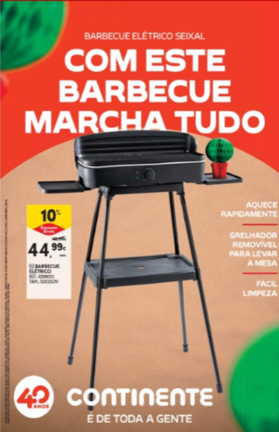 Um dos modelos que tem chamado a atenção nesta temporada é o Barbecue Eléctrico do Continente. Trata-se de um equipamento compacto, com grelhador removível e estrutura metálica, concebido para facilitar a preparação de grelhados em espaços exteriores como varandas, terraços ou pátios.