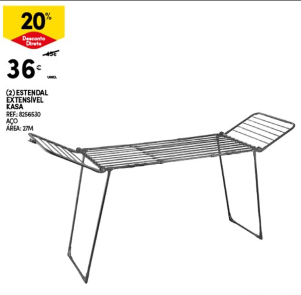 Neste contexto, alguns supermercados têm registado maior procura por artigos ligados à organização da casa e à secagem da roupa. É o caso de um estendal extensível da marca Kasa, atualmente disponível nas lojas do Continente com um desconto direto de 20%, passando de 45 para 36 euros.