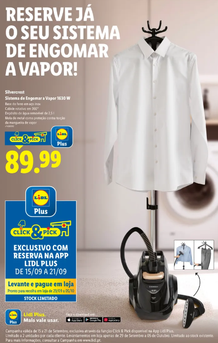 O sistema de engomar a vapor agora lançado insere-se nesta linha de produtos, reforçando a aposta do Lidl em oferecer alternativas inovadoras e funcionais para o dia a dia.