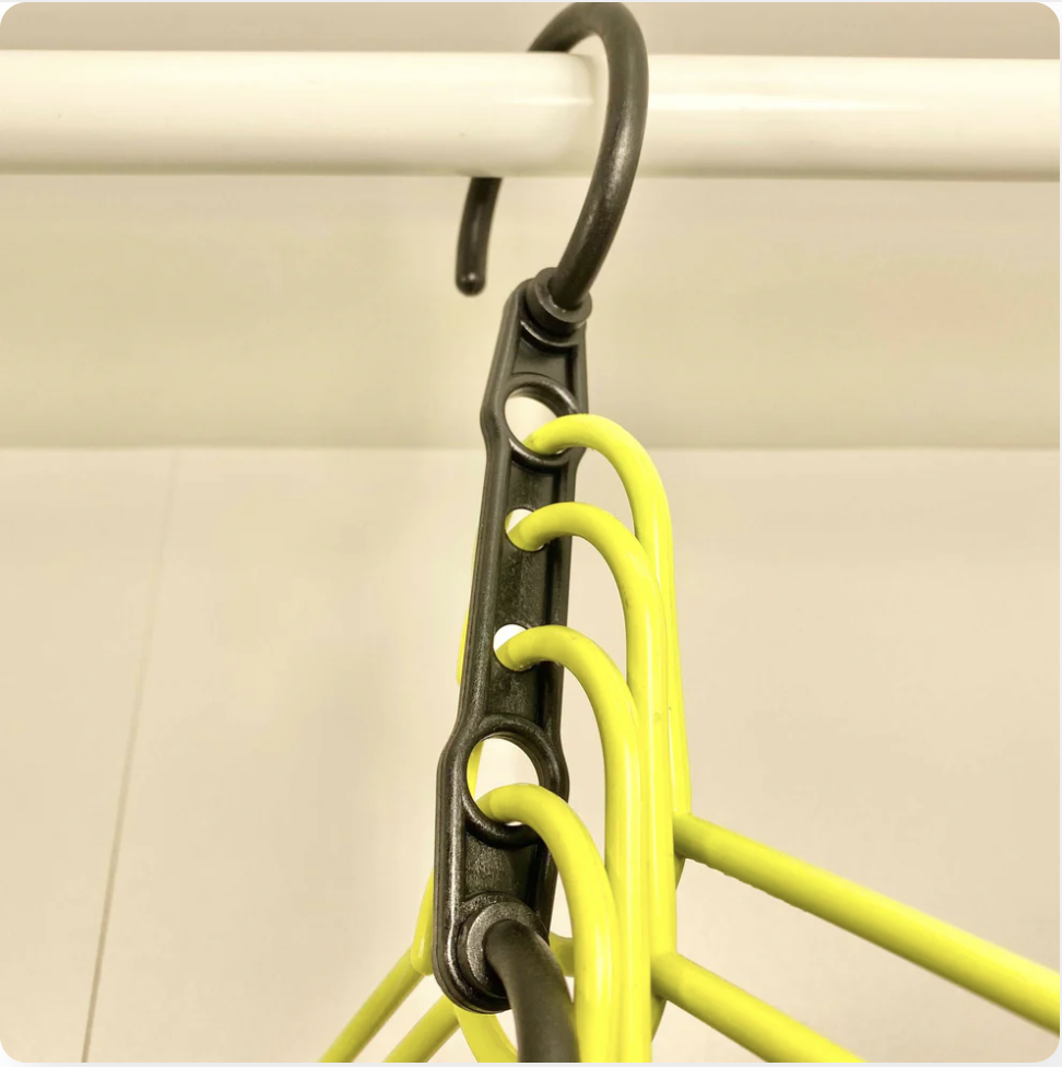 Este acessório, disponível em versões com 4 furos, permite agrupar vários cabides numa única estrutura, libertando espaço na haste principal do roupeiro e suporta até quatro peças de roupa sem comprometer a disposição.