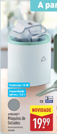 A partir de 9 de abril, o Aldi disponibiliza nas suas lojas uma máquina de gelados da marca Ambiano por 19,99 euros.