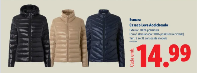 Nos últimos anos, as linhas de roupa Esmara e Livergy do Lidl têm ganho destaque entre os consumidores portugueses pela boa relação qualidade-preço. Segundo a mesma fonte, este casaco acolchoado segue a mesma tendência: materiais resistentes, conforto e preço competitivo.
