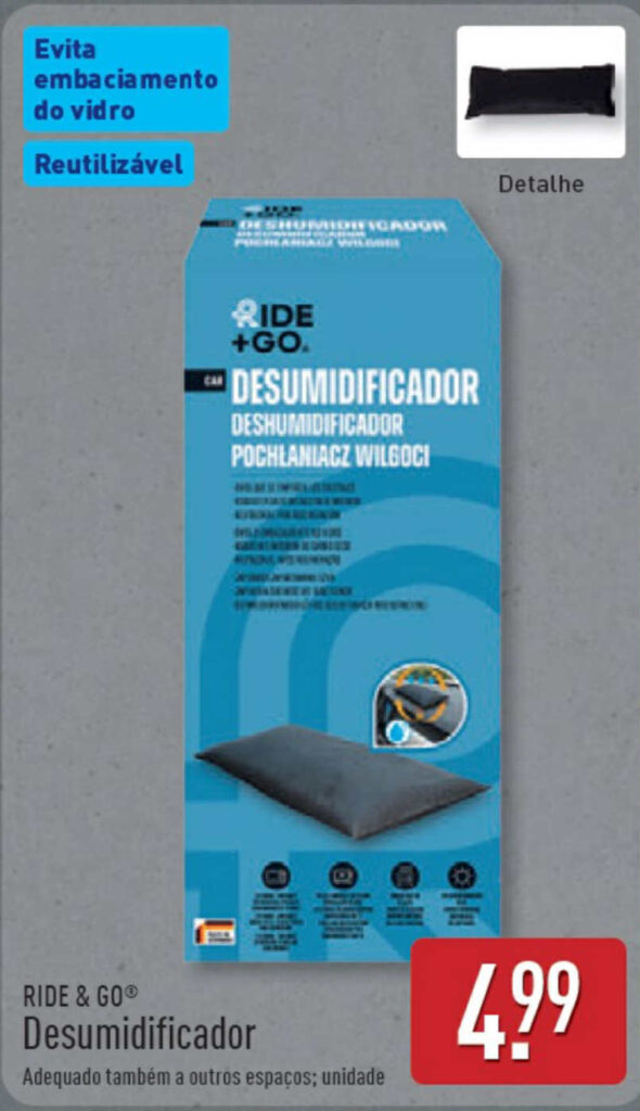 O Ride & Go Desumidificador chega às lojas Aldi a 1 de novembro por 4,99 euros. Trata-se de uma campanha semanal com quantidades limitadas, pelo que a disponibilidade pode variar consoante a loja.