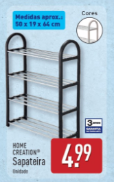 O Aldi explica que, para quem possui mais calçado, é possível colocar várias unidades lado a lado ou empilhadas, criando um sistema modular adaptado ao número de pares a organizar. Esta versatilidade, aliada ao preço, poderá justificar uma procura elevada.