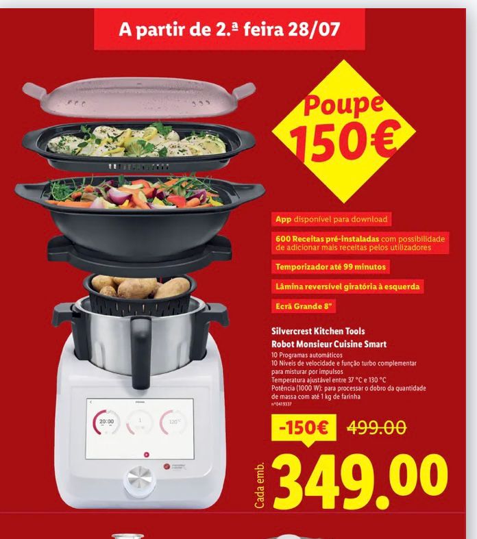 Nos últimos anos, os robots de cozinha têm vindo a ganhar popularidade entre os consumidores portugueses, refletindo uma tendência crescente para a automatização de tarefas domésticas. Estes equipamentos, que reúnem várias funções num só aparelho, têm sido procurados por utilizadores que pretendem maior eficiência na preparação das refeições. Entre os modelos disponíveis neste segmento encontra-se o Robot Monsieur Cuisine Smart do Lidl.