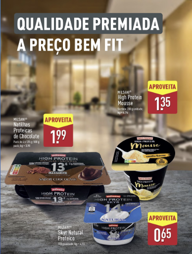 Os produtos Aldi desta campanha incluem sobremesas e snacks proteicos da marca Milsani®, como natilhas, mousses e iogurtes skyr. Os itens destacam-se pelo seu teor proteico elevado e baixo teor de gordura, sendo ideais para quem pratica exercício físico com regularidade.