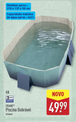 Com o verão a chegar em força, muitos procuram soluções práticas e económicas para enfrentar o calor sem sair de casa. Uma das propostas que se destaca no catálogo de fim de junho do Aldi é uma piscina dobrável da marca Crane, disponível por 49,99 euros a partir do dia 28.