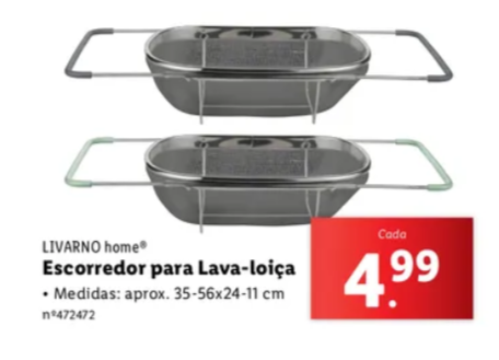 O Lidl lança a partir de 18 de abril um novo escorredor para lava-loiça ajustável, com preço de venda fixado nos 4,99 euros. O artigo, que integra a gama da marca própria Livarno Home, foi concebido para responder às necessidades de quem procura soluções práticas para cozinhas com espaço limitado.