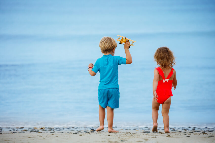 Na praia, embora as condições sejam diferentes, a escolha de cores vivas continua a ser recomendada para garantir uma visibilidade imediata. A rápida deteção visual é crucial para evitar que uma criança fique demasiado tempo submersa sem ser vista.