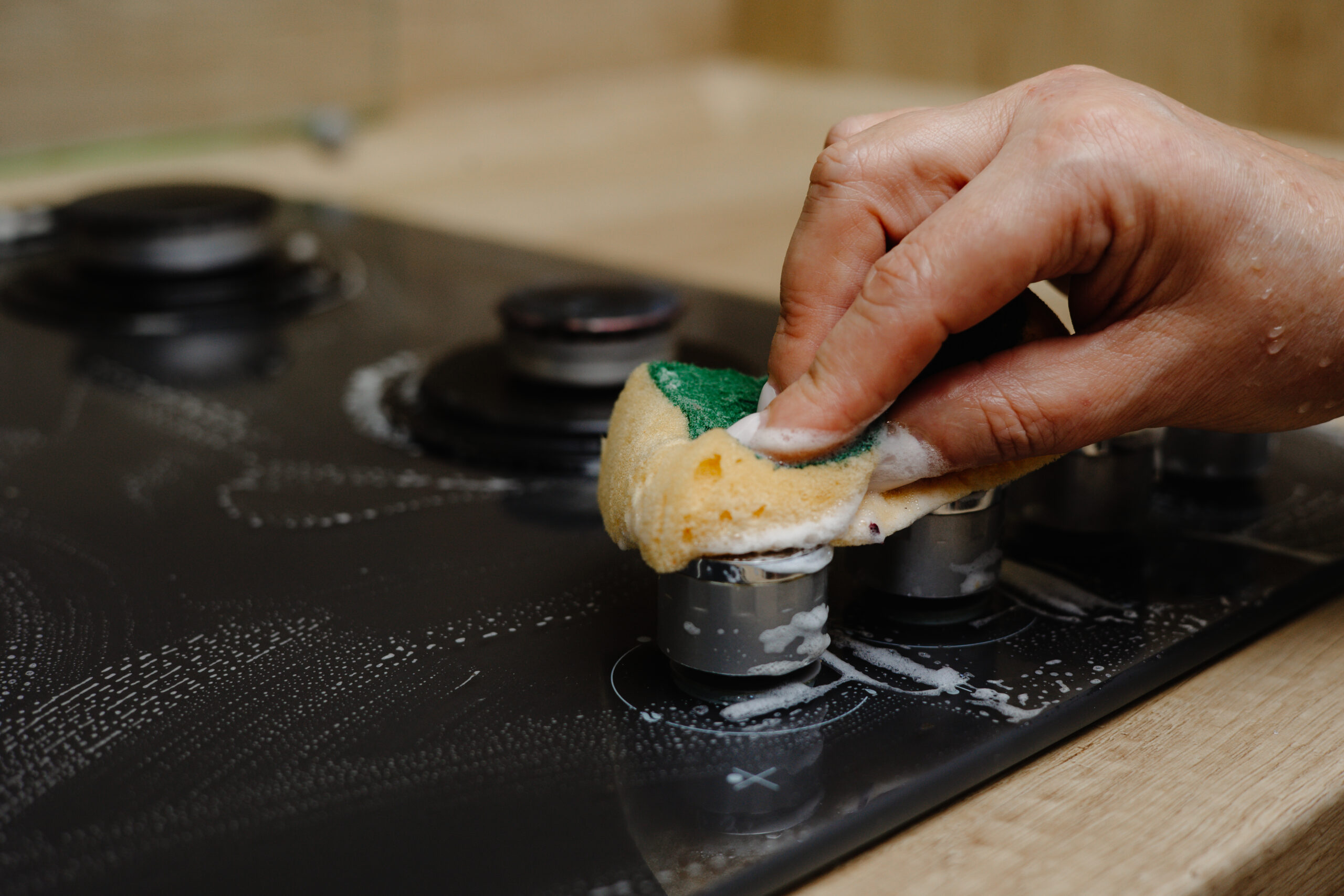 Deve-se deixar atuar entre cinco a dez minutos para que a gordura amoleça. Depois, basta esfregar com uma esponja, remover os resíduos e enxaguar com água morna. Caso permaneçam manchas, o processo pode ser repetido. Quando todas as peças estiverem secas, é só voltar a montá-las e abrir novamente a saída de gás.