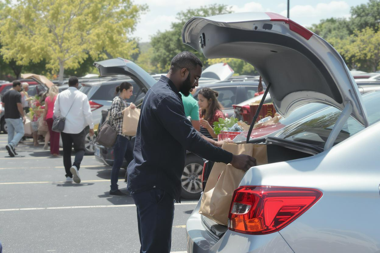 Ao estacionar o veículo, reparou que um saco tinha sido deixado no chão por alguém que se afastou rapidamente. Após recolher o objeto, tentou identificar quem o teria deixado, mas sem sucesso.
