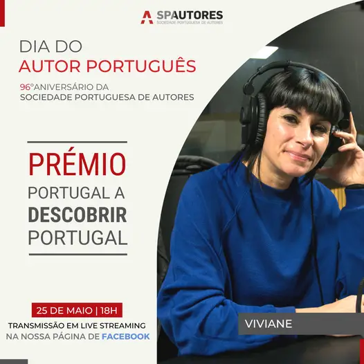 Viviane vai receber o Prémio “Portugal a Descobrir Portugal” na comemoração do Dia do Autor Português e do 96º Aniversário da Sociedade Portuguesa de Autores, que vai decorrer esta terça-feira nas suas instalações às 18:00.